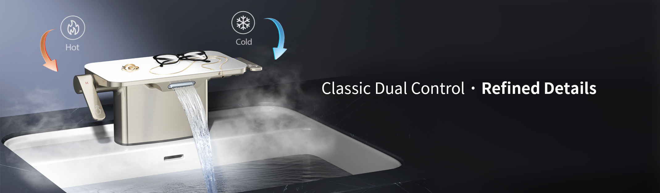 4-inch Double Handle Glass Shelf Waterfall Bathroom Sink Faucet