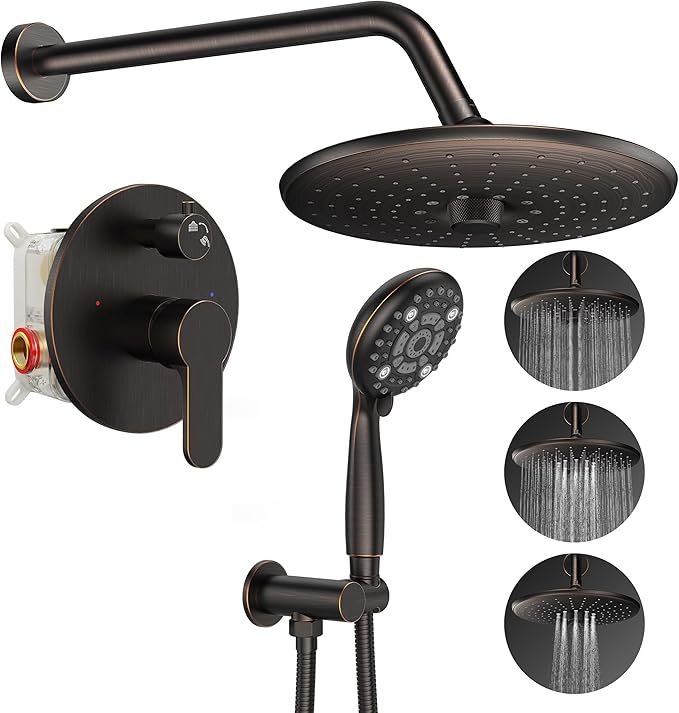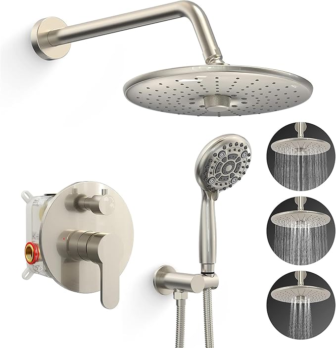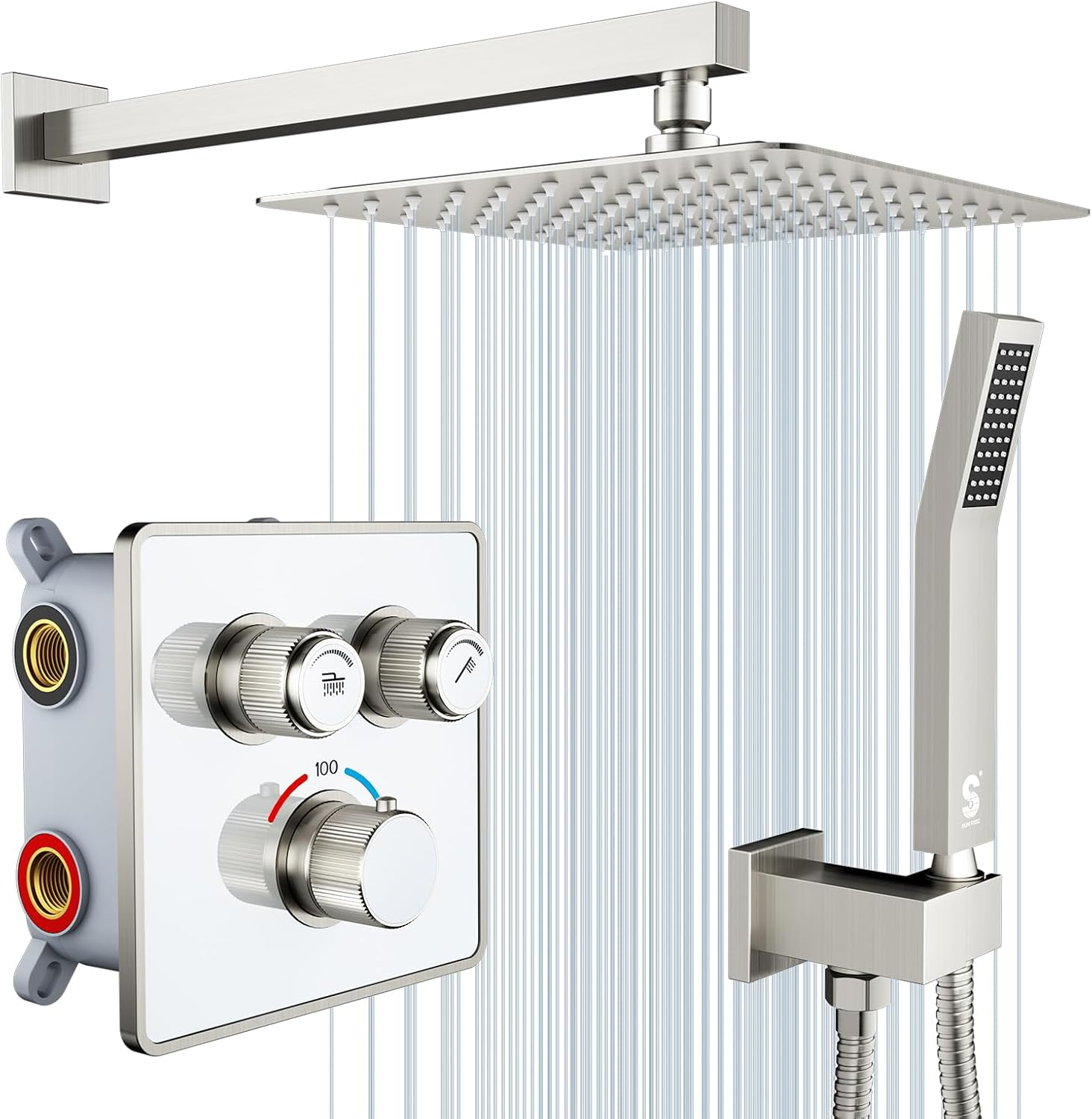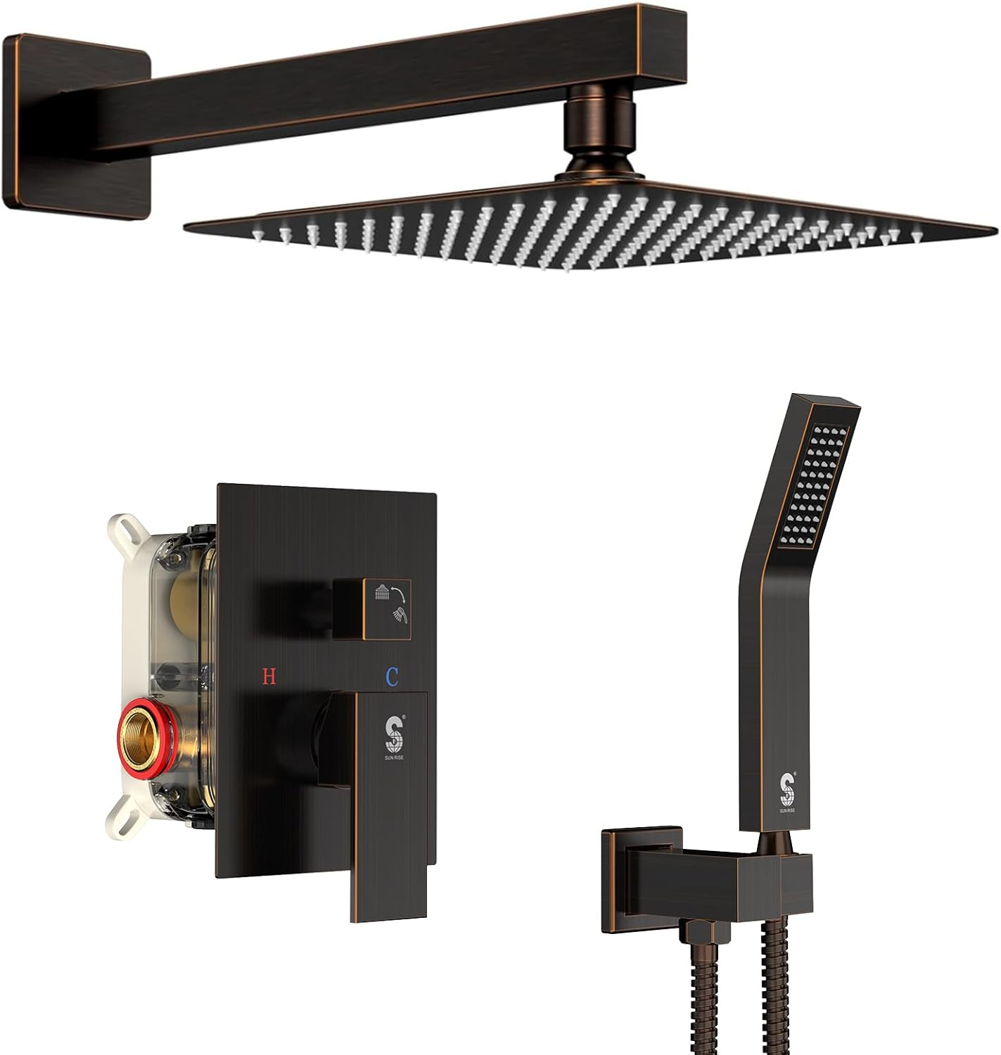 SR SUN RISE 10-Inch Square Rain Shower Faucet Set with Handheld Spray