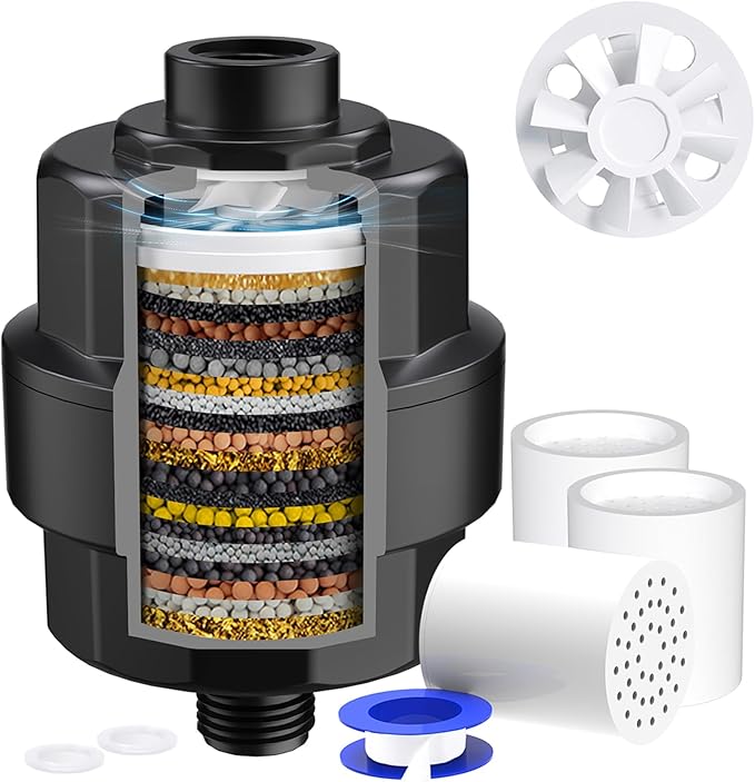 Removes Chlorine, Fluoride, Heavy Metals in Hard Water, Softens Water for Hair Health.