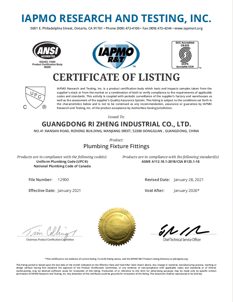 Our products have passed cUPC certification. Products are in compliance with the following standard(s)