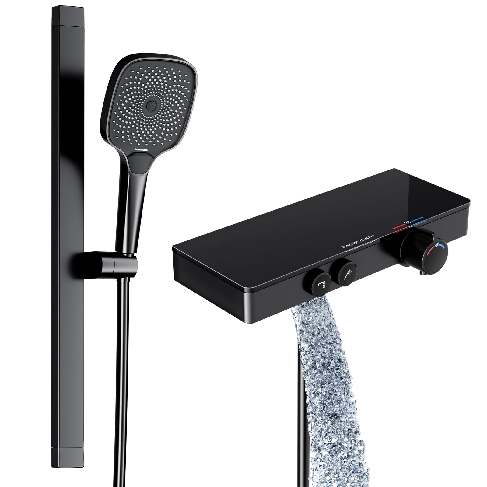 Chrome Thermostatic Shower System with 26x26cm Rain Shower, 3-Mode Handheld & Lower Outlet